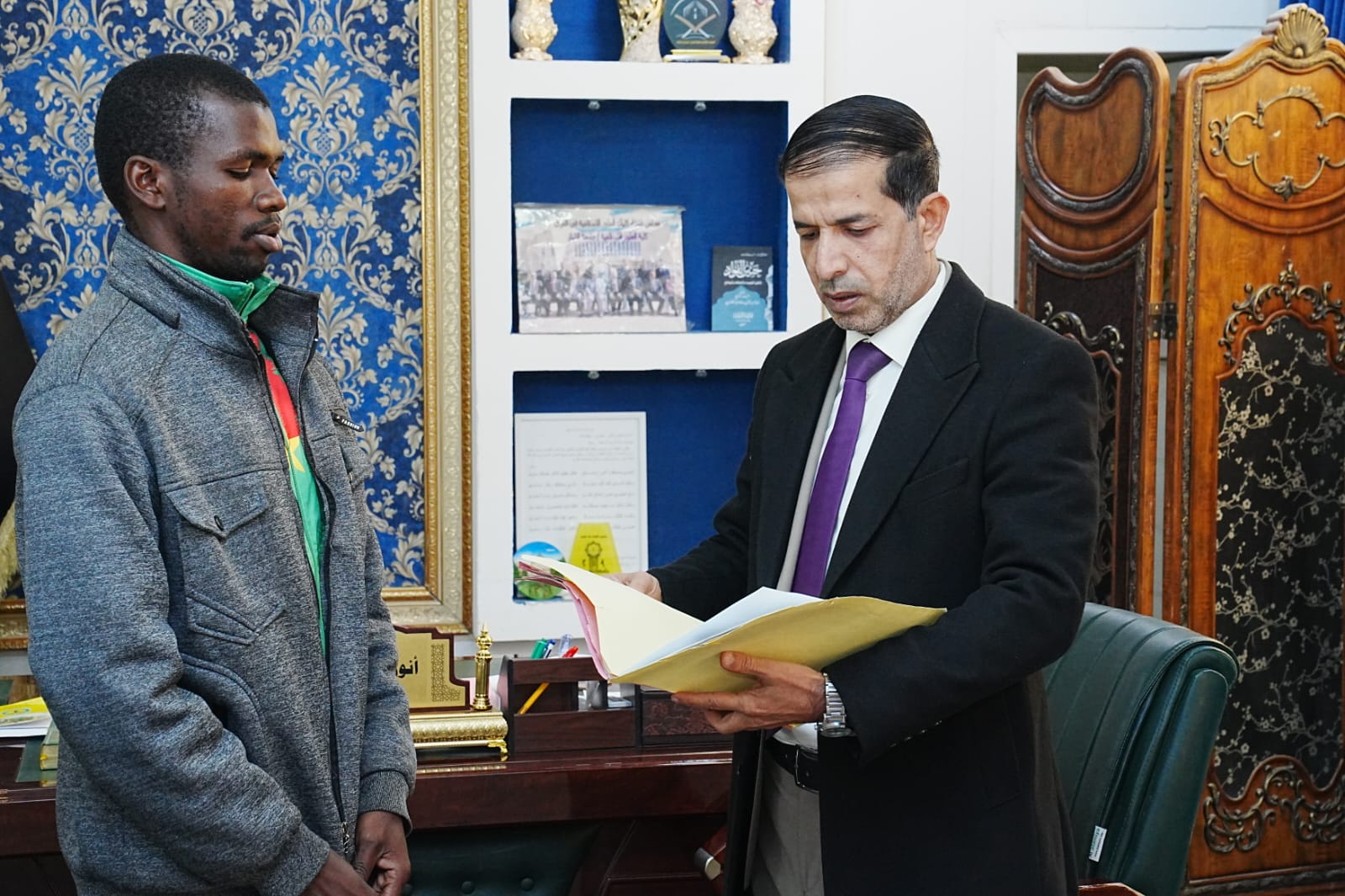 استقبل السيد عميد كلية العلوم الإسلامية الأستاذ الدكتور أنور فارس عبد الطالب عبدالرشيد سوادگو من دولة بوركينافاسو، المقبول للدراسة في كليتنا ضمن مبادرة «ادرس في العراق»، في قسم التفسير وعلوم القرآن / الدراسة الأولية