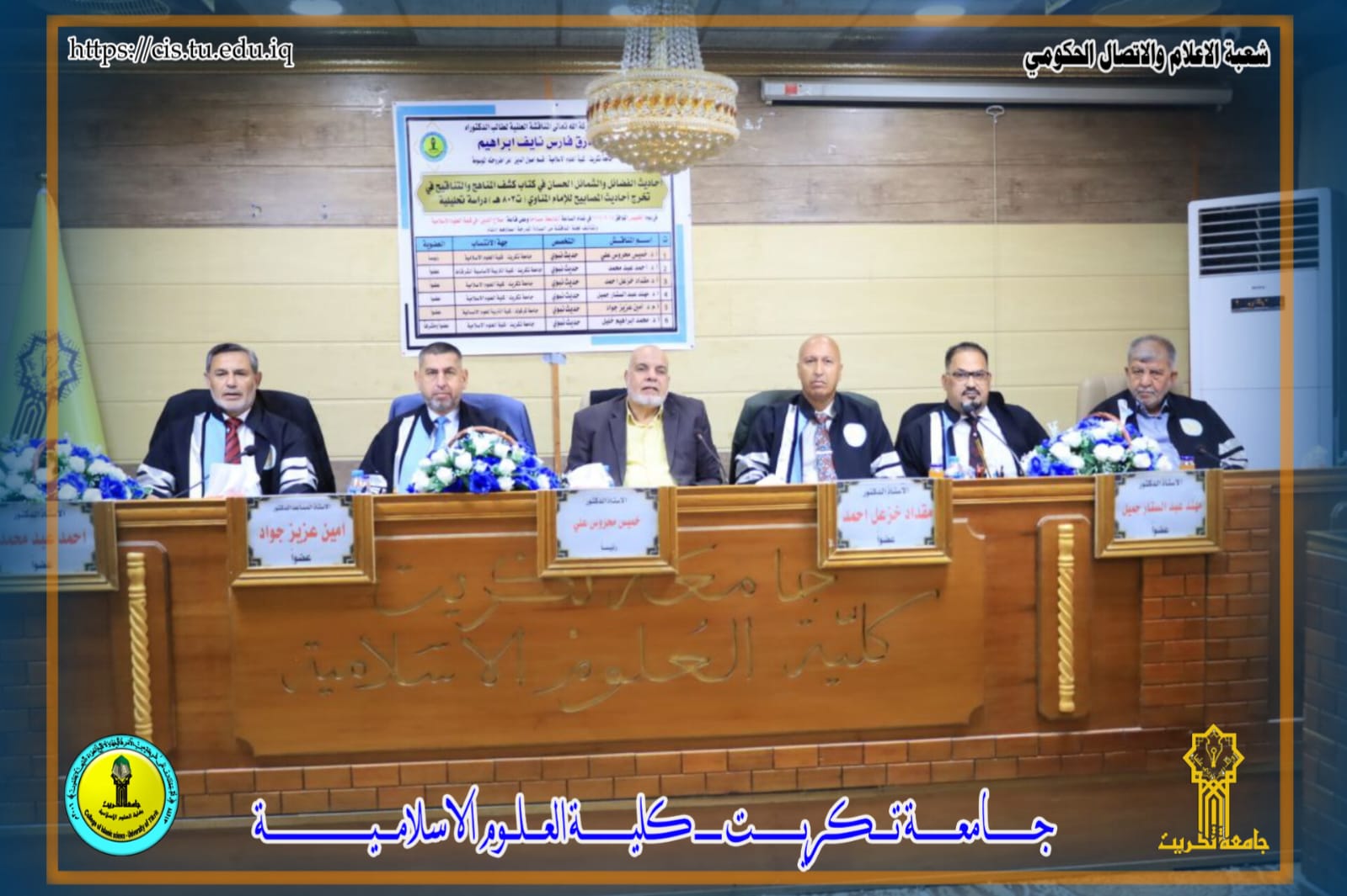 مناقشة اطروحة دكتوراه في قسم الحديث وعلومه بعنوان ( نصوص التوراة في الاحاديث والآثار من كتب السنة النبوية المطهرة_جمعاً ودراسة )