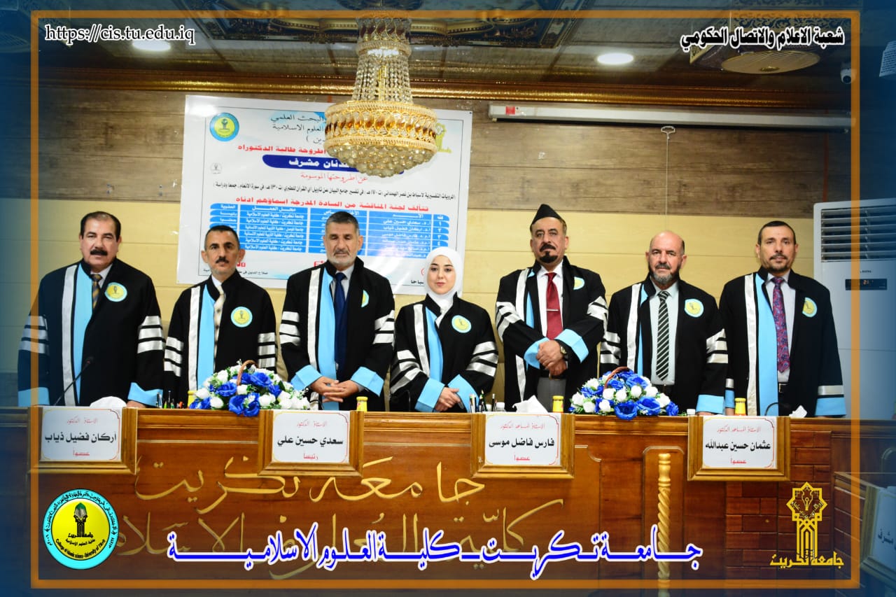 جرت في كلية العلوم الإسلامية – قسم اصول الدين مناقشة أطروحة الدكتوراه للطالبة سعاد عدنان مشرف ، الموسومة بـ “المرويات التفسيرية لأسباط بن ناصر الهمداني (ت170هـ) في تفسير جامع البيان عن تأويل آي القرآن للطبري (ت310هـ) في سورة الأنعام_جمعاً ودراسة" وذلك اليوم الخميس الموافق 24/7/2025 ، في قاعة صلاح الدين في كليتنا ، تحت إشراف الدكتور عبدالله اسود خلف.