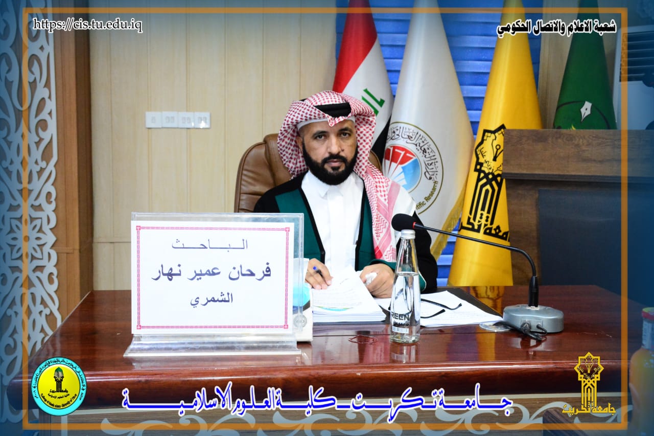 مناقشة رسالة الدبلوم العالي المعادل للماجستير / الامن الفكري في قسم اصول الدين بعنوان ( دور تكنولوجيا المعلومات في تعزيز الامن الفكري_قسم تربية الشرقاط أنموذجاً )