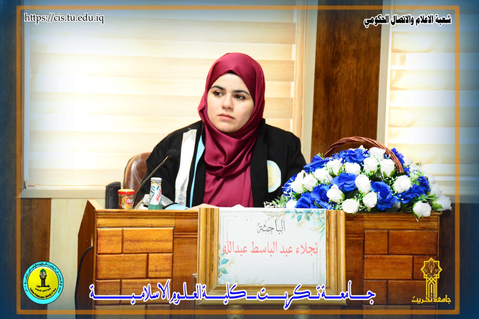 مناقشة رسالة الدبلوم العالي المعادل للماجستير / الامن الفكري في قسم اصول الدين بعنوان ( التسامح وأثره في تعزيز القيم الاجتماعية لدى منتسبي مديرية بلدية تكريت )