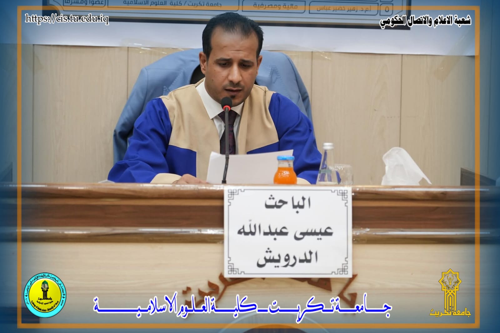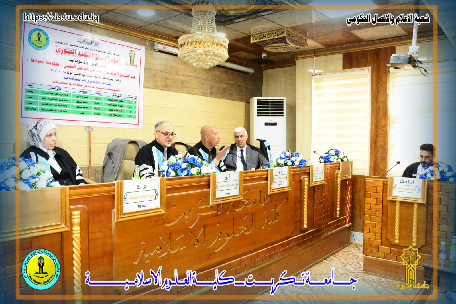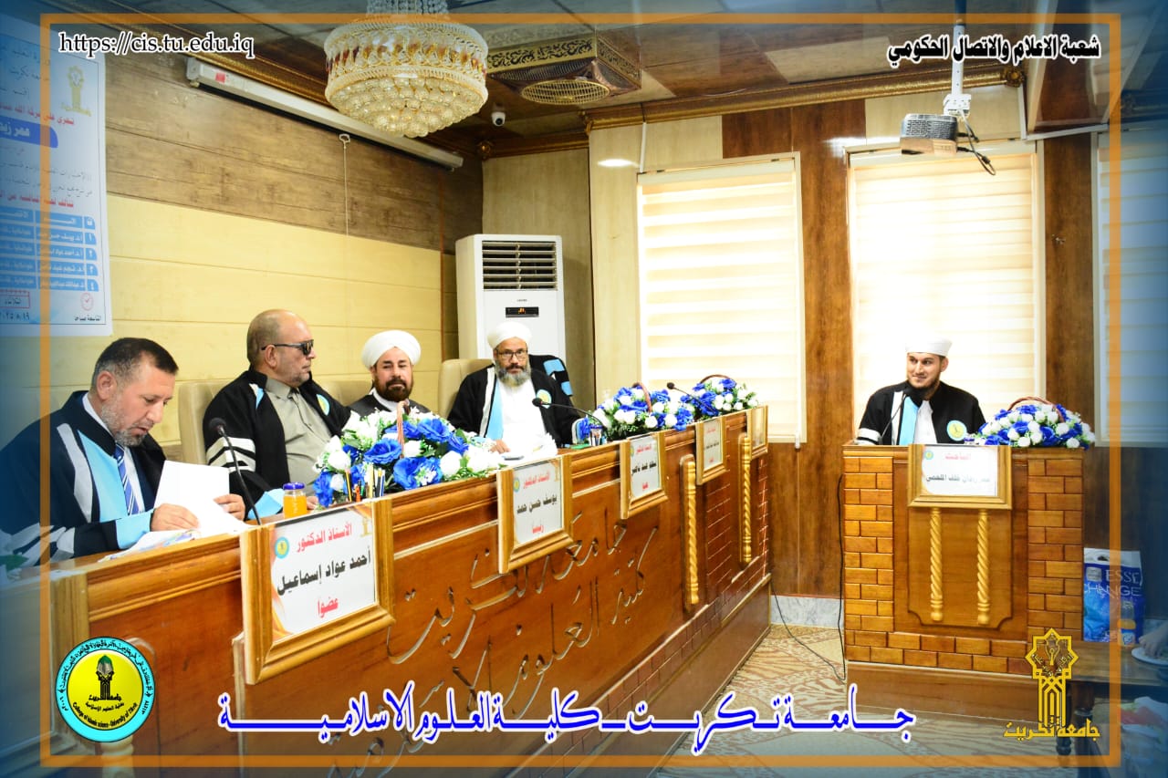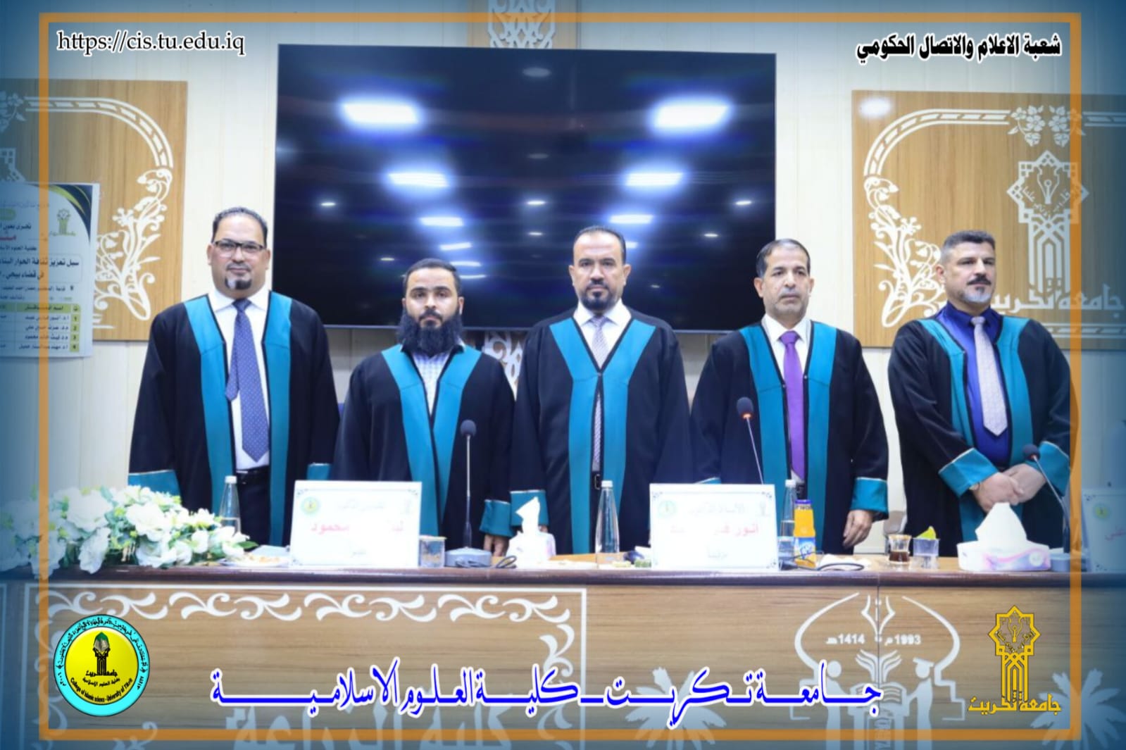 مناقشة رسالة الدبلوم العالي المعادل للماجستير / الامن الفكري في قسم اصول الدين بعنوان ( مناهج كلية العلوم الاسلامية/جامعة تكريت ودورها في ترسيخ قيم التسامح والسلم المجتمعي لدى طلبة المرحلة الثالثة )