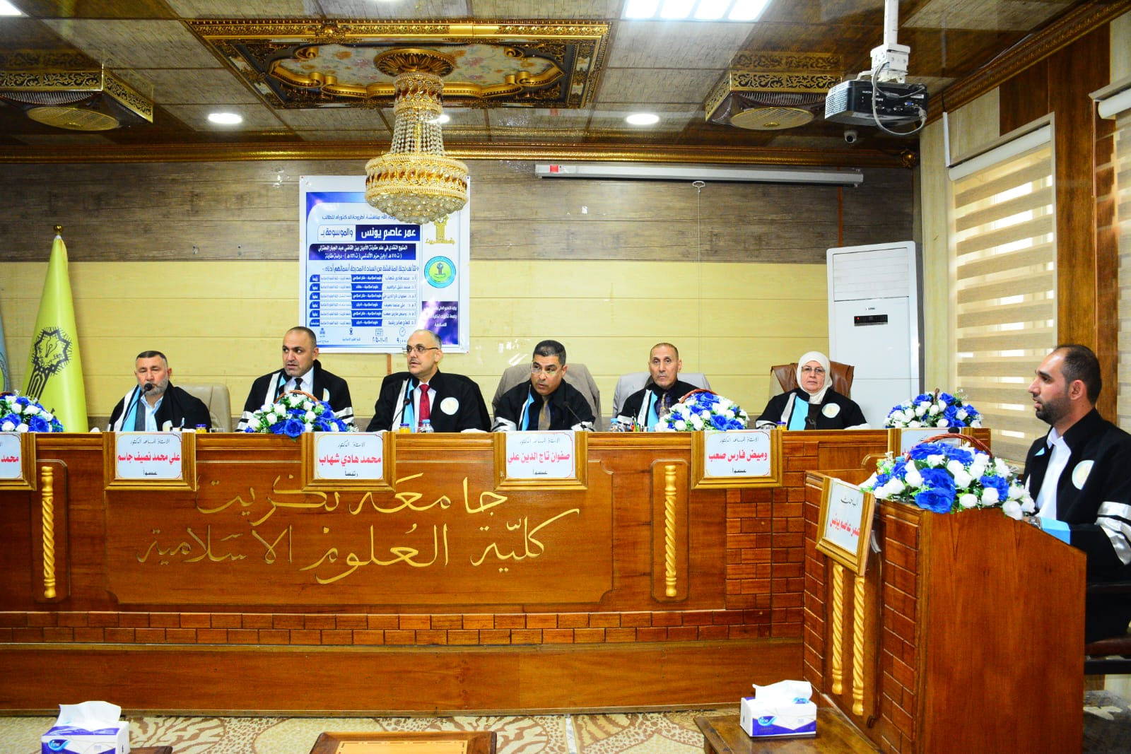 مناقشة أطروحة دكتوراه في قسم اصول الدين بعنوان ( أحاديث الفضائل والشمائل الحسان في كتاب كشف المناهج والتناقيح في تخريج أحاديث المصابيح للإمام المناوي (ت802هـ) دراسة تحليلية )