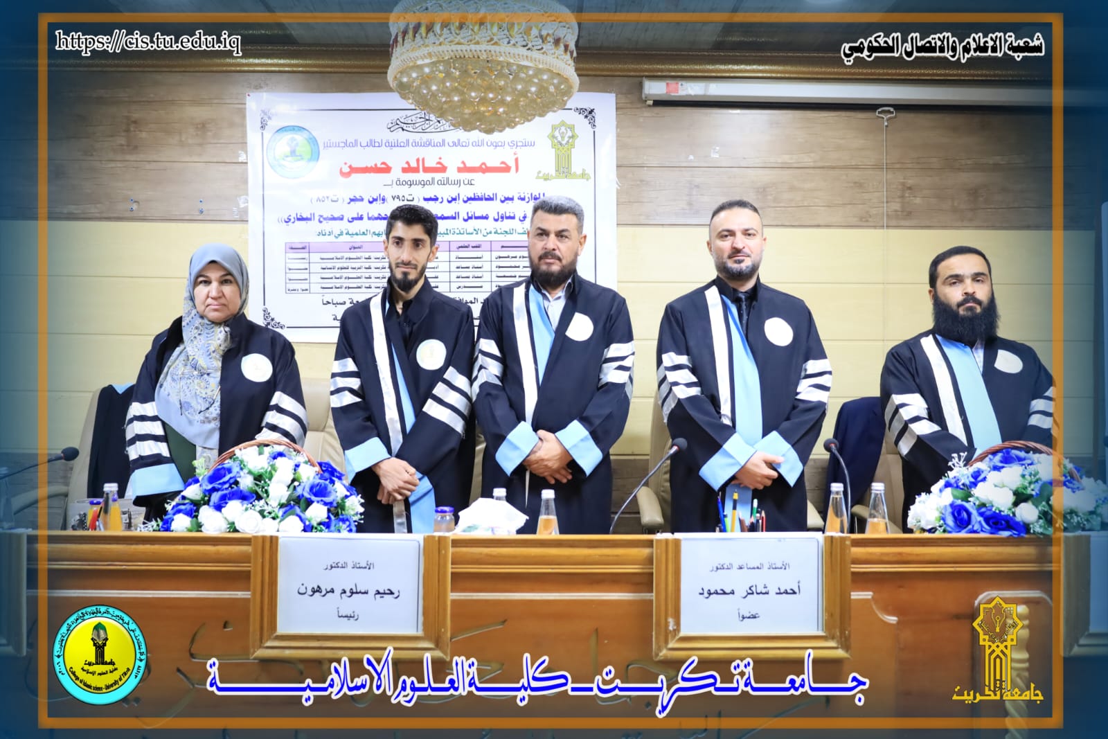 مناقشة اطروحة دكتوراه في قسم اصول الدين بعنوان ( منهج الإستدلال العقدي عند الامامين الزمخشري (ت538 هـ) والرازي (606هـ) في تفسيريهما باب النبوات والسمعيات_دراسة مقارنة )