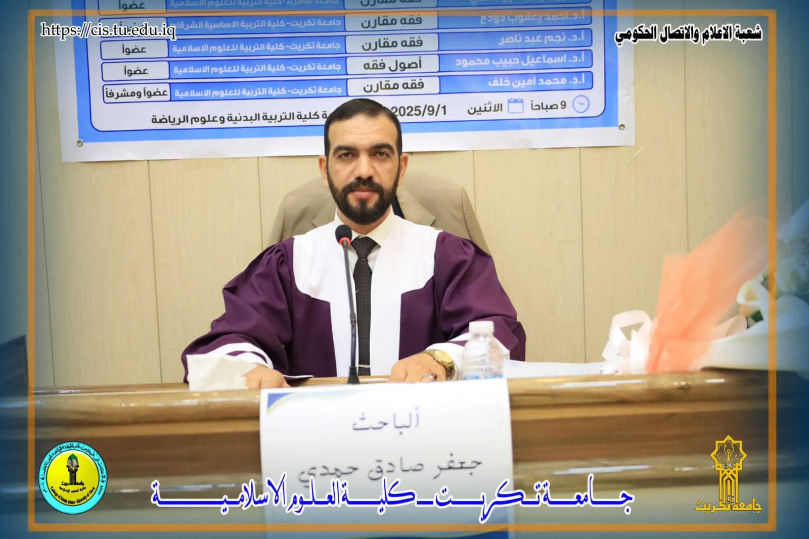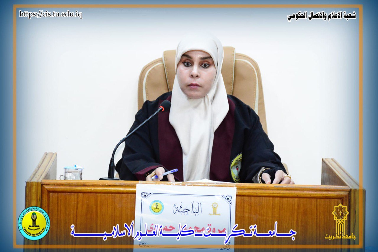 مناقشة رسالة الدبلوم العالي المعادل للماجستير / الامن الفكري في قسم اصول الدين بعنوان ( مفهوم المواطنة الرقمية وأثرها في تعزيز الامن الفكري لدى الجامعات العراقية_محافظة كركوك أنموذجاً )