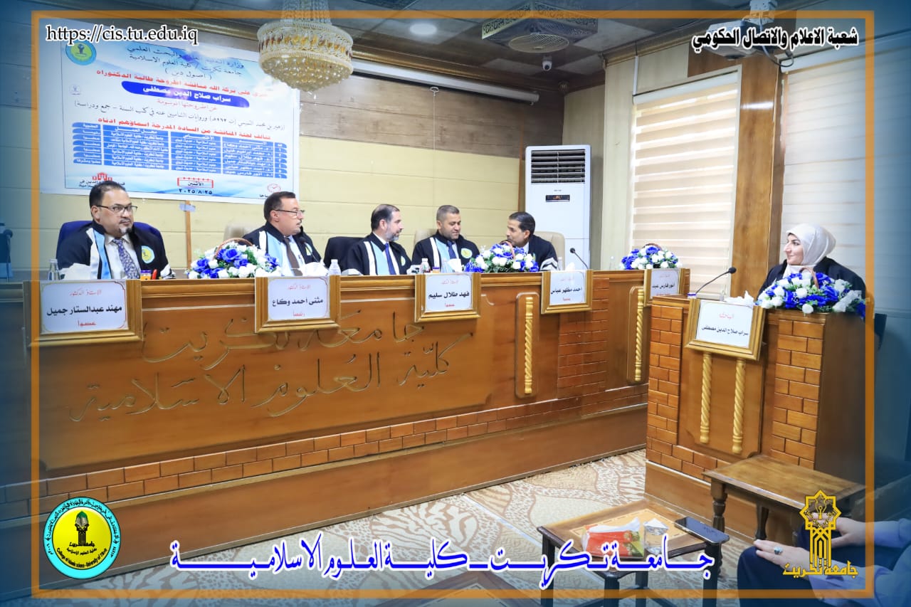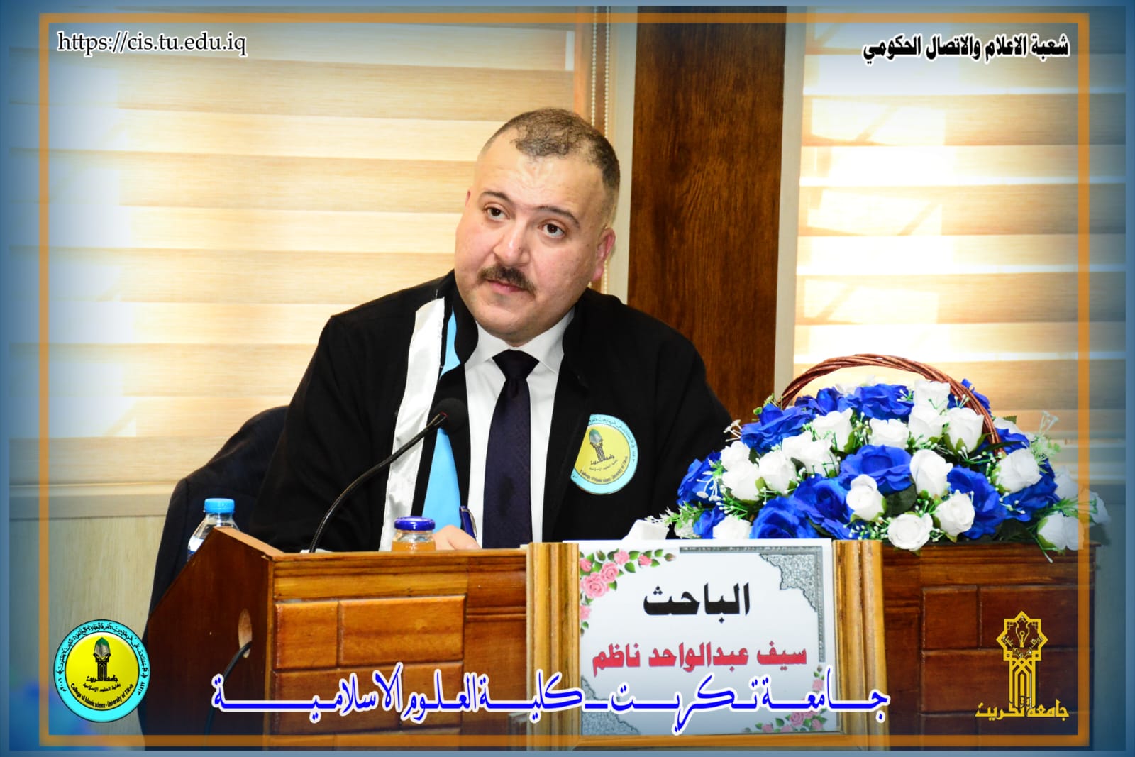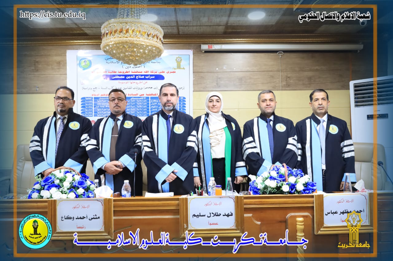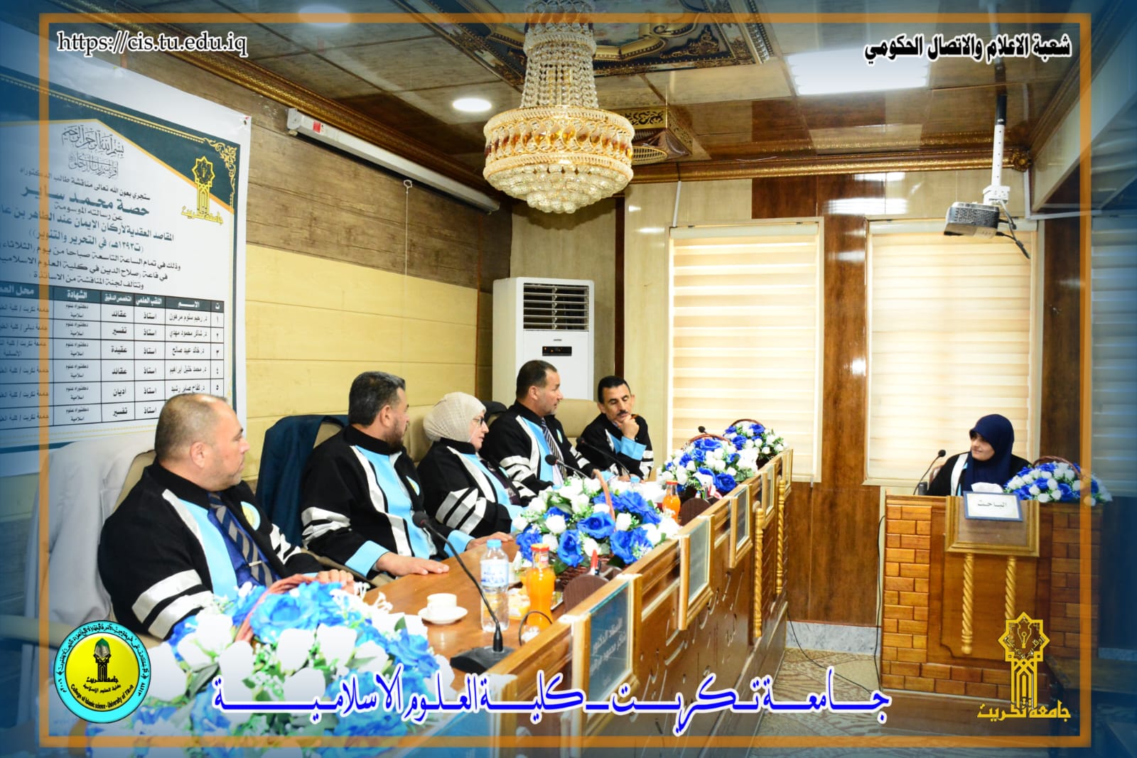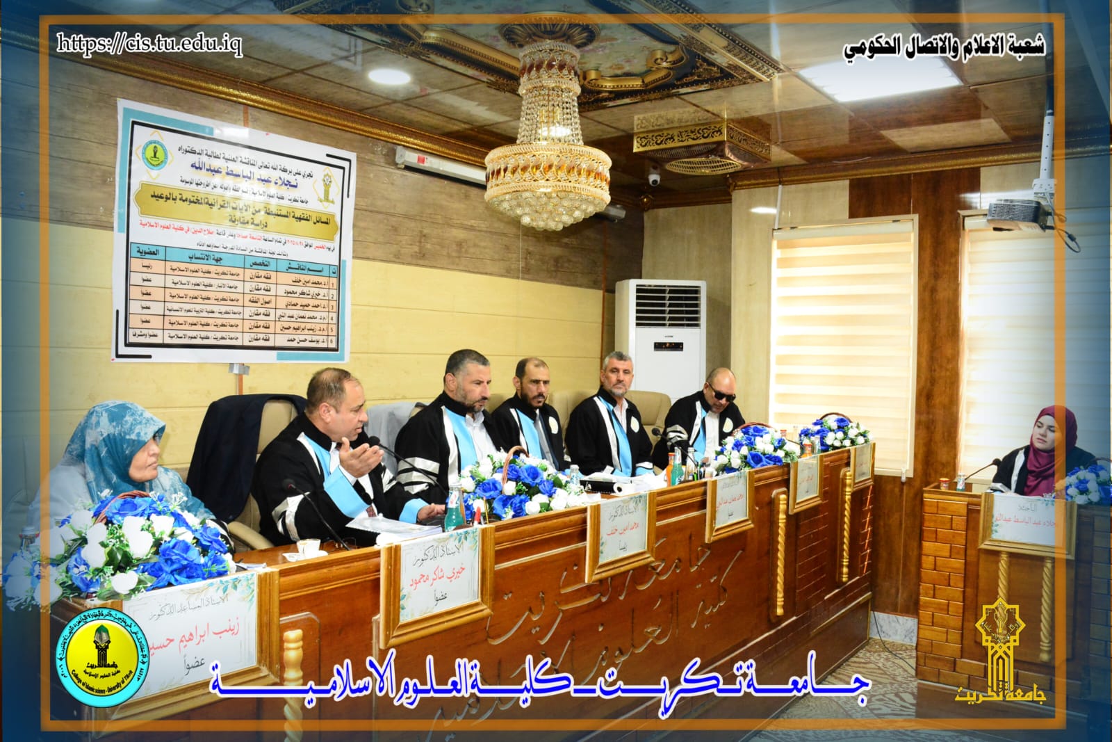 مناقشة رسالة الدبلوم العالي المعادل للماجستير / الامن الفكري في قسم اصول الدين بعنوان ( التسامح وأثره في تعزيز القيم الاجتماعية لدى منتسبي مديرية بلدية تكريت )