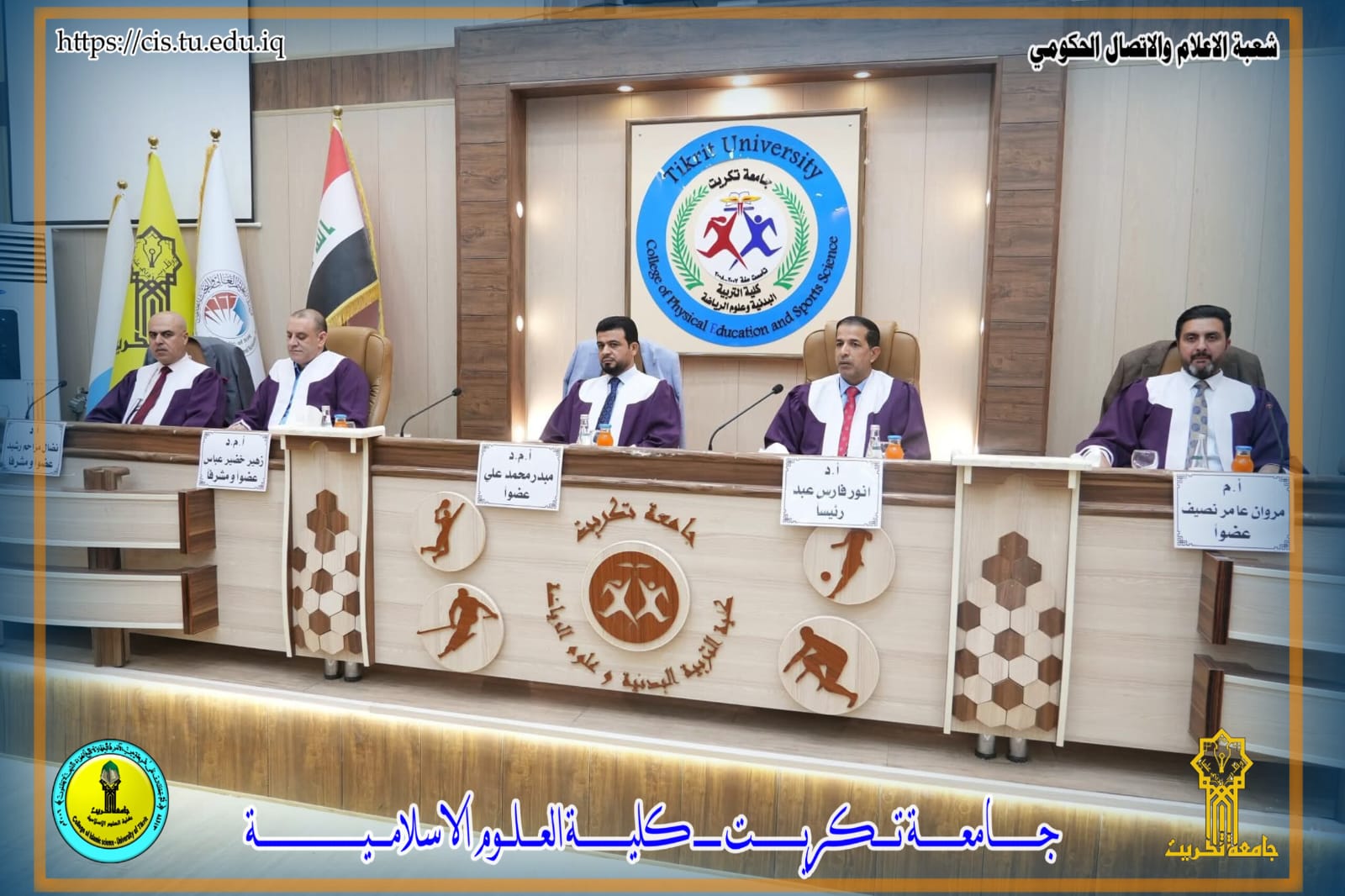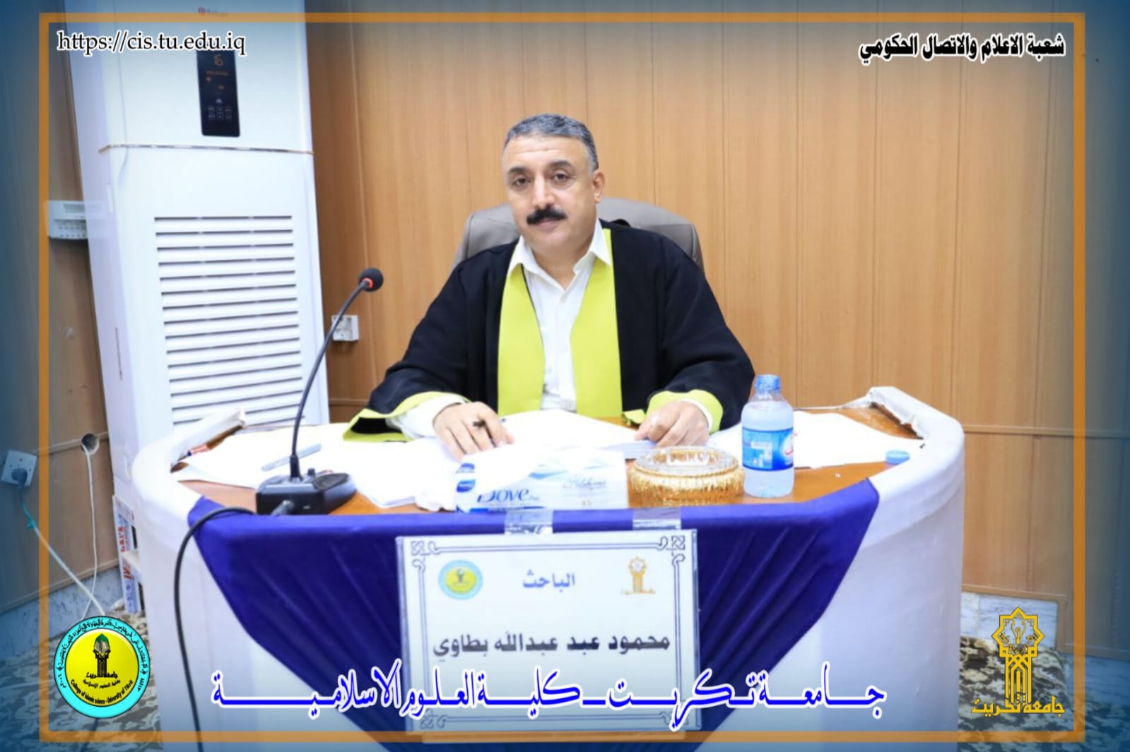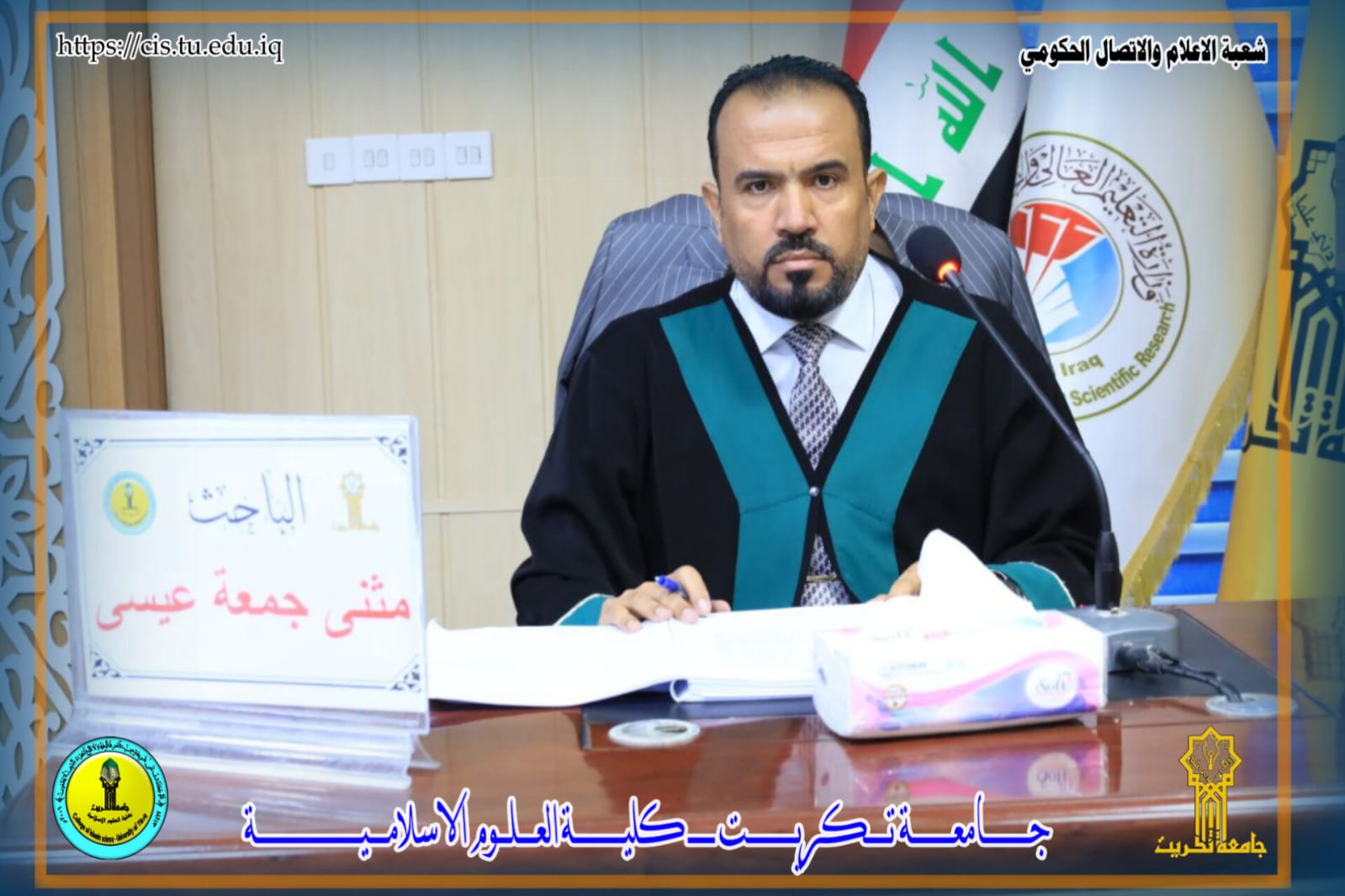 مناقشة رسالة الدبلوم العالي المعادل للماجستير / الامن الفكري في قسم اصول الدين بعنوان ( مناهج كلية العلوم الاسلامية/جامعة تكريت ودورها في ترسيخ قيم التسامح والسلم المجتمعي لدى طلبة المرحلة الثالثة )